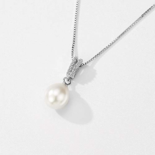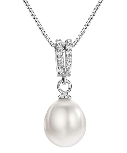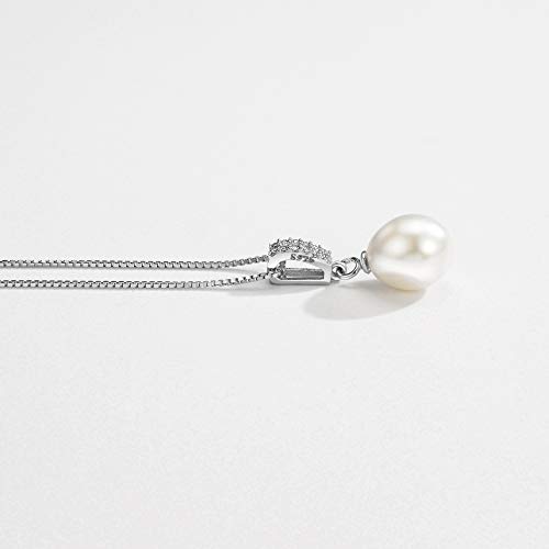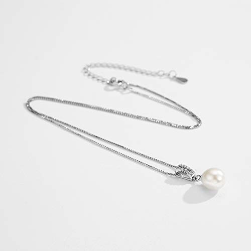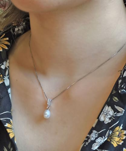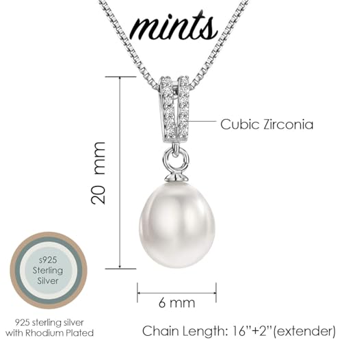 Mints - سلسلة بدلاية لؤلؤ المياه العذبة للنساء مجوهرات من الفضة الاسترلينية مرصعة بالماس بطول 16-18 بوصة بيرل زركونيا مكعب