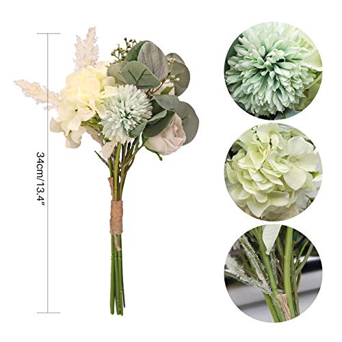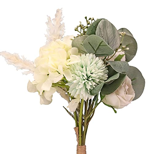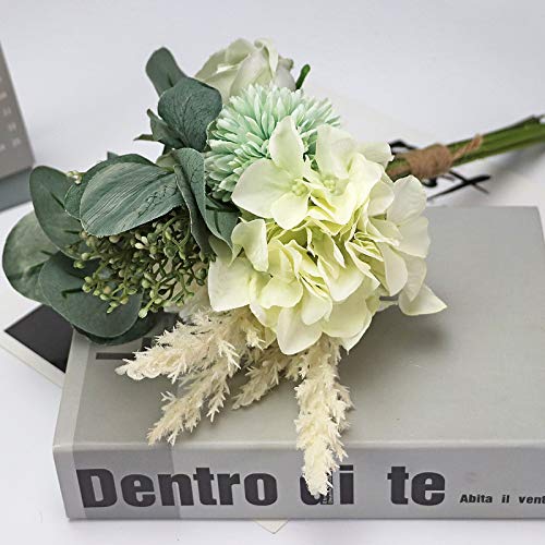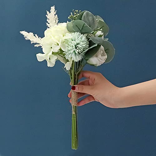 MINYULUA - باقة زفاف من زهور الكوبية الصناعية مع السيقان، وتنسيقات زهور من أوراق الأوكالبتوس المحاكية للواقع لديكور حفلات الزفاف والمنزل والمكتب من مينيولا