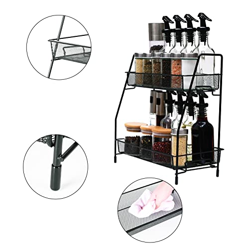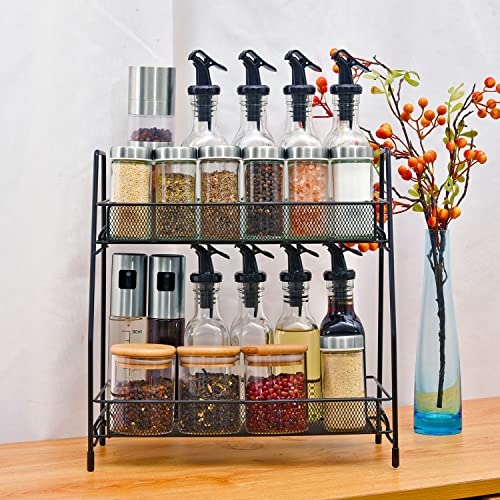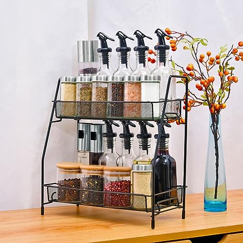 Miorkly - رف توابل معدني بـ 2 طبقة بتصميم قائم قابل للتجميع بسعة كبيرة تتسع لمعظم أحجام البرطمانات من ميوركلي