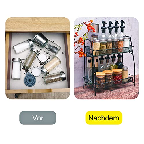 - منظم المطبخ: يحتوي رف التوابل المكون من طبقتين على طبقة حماية مطاطية مضادة للانزلاق في الأسفل لتجنب إلحاق الضرر بالطاولة. رف التوابل القائم بذاته مناسب لدواليب المطبخ وأسطح المناضد. يمكن للإطار المتين أن يضمن ثبات برطمانات التوابل ويمنع الاهتزاز أو الانقلاب أو السقوط.