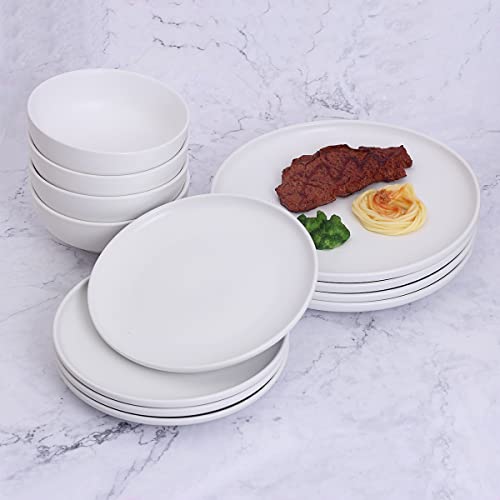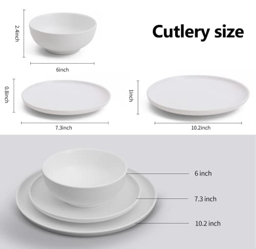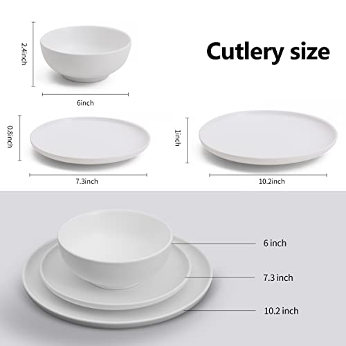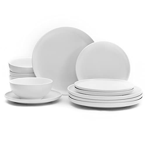 MioseeYa - طقم عشاء مكون من 16 قطعة يتضمن 4 أطباق وبولة من ميوسيا، أبيض غير لامع