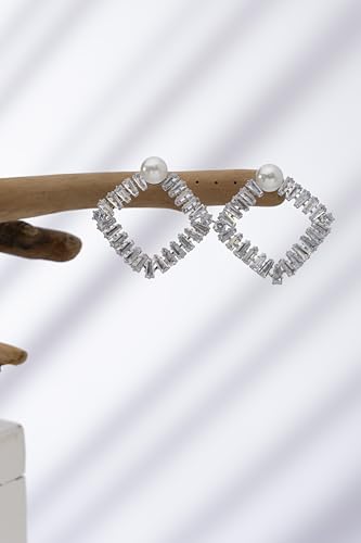 Mira Kids - Mira Kids حلق نسائي لؤلؤ وزركون – نحاس مطلي بالبلاتين بلمعة راقية – تصميم عصري كلاسيكي خفيف مناسب للاستخدام اليومي والحفلات