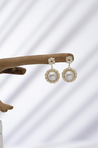 Mira Kids - Mira Kids – حلق نسائي فاخر بلؤلؤ وفصوص زركون | تصميم أنيق مطلي بلاتين | متوفر بلونين: فضي وذهبي | خامة نحاس عالية الجودة | إكسسوار راقٍ للمناسبات