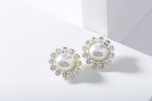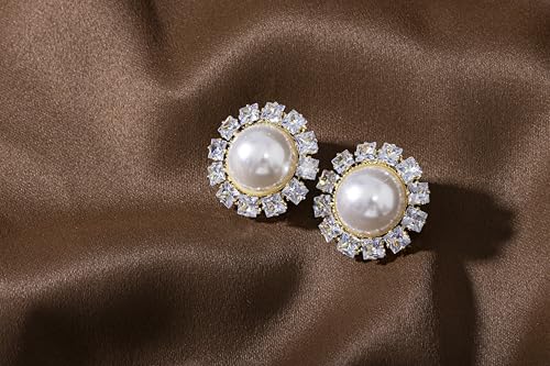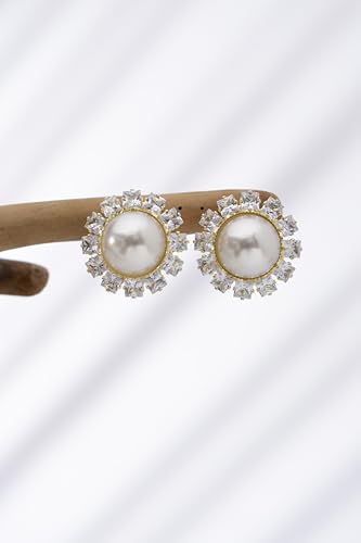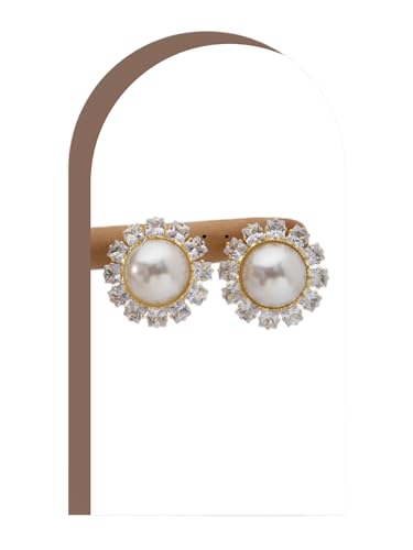 Mira Kids - Mira Kids حلق نسائي فاخر بتصميم ملكي مستدير – نحاس مطلي بلاتين مرصع بفصوص زركون لامعة ولؤلؤ صناعي أنيق – إطلالة راقية تناسب السهرات والمناسبات الخاصة