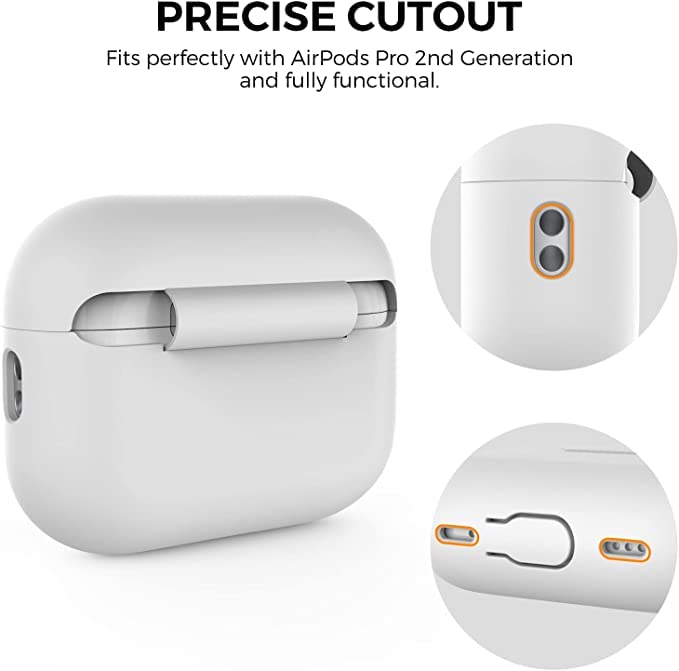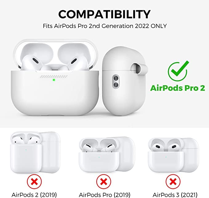 • 【حماية فائقة】متوافق مع جهاز آبل ايربودز برو الجيل الثاني فقط، مصنوع من السيليكون الناعم الممتاز، يحمي سماعات ايربودز من الصدمات والسقوط والخدوش. تصميم مانع للغبار - يعمل الهيكل على الحفاظ على منفذ الشحن نظيفًا ومغلقًا بإحكام في حالة عدم الاستخدام