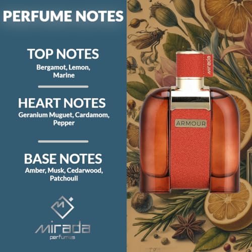 - عطر ارمور او دو تواليت للرجال هو عطر جريء وقوي مصمم لتوجيه الرجل العصري بثقة وقوة من ميرادا.