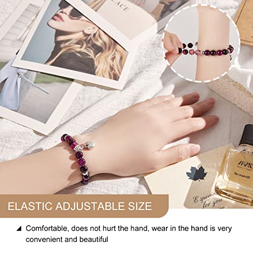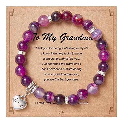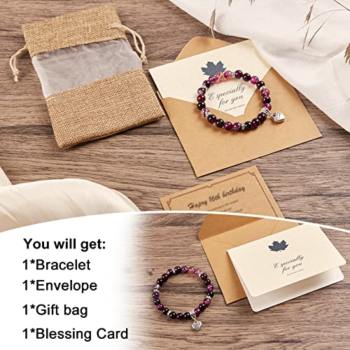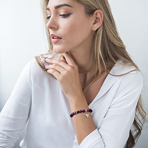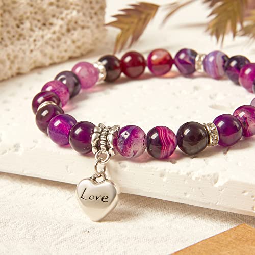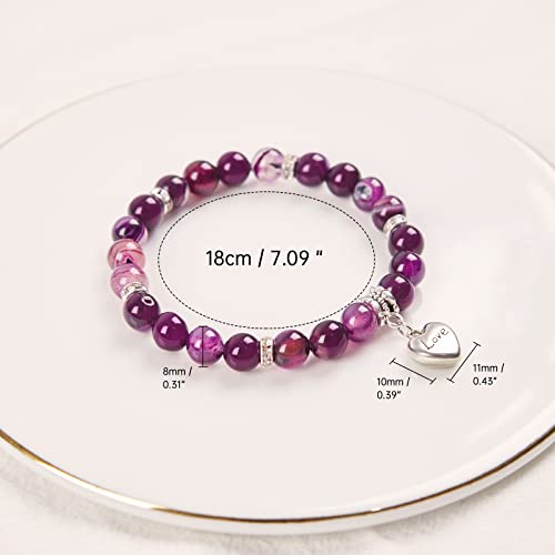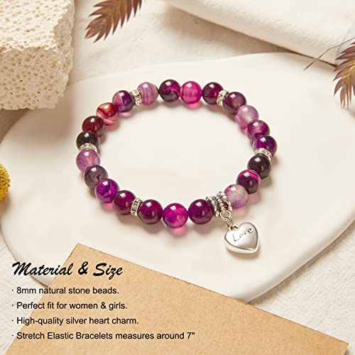 MIRGREE - سوار من الحجر الطبيعي للنساء ميرجري هدية عيد ميلاد للام - العمة - الجدة بدلاية على شكل قلب مع بطاقة رسالة 8 ملم حجر عقيق ارجواني
