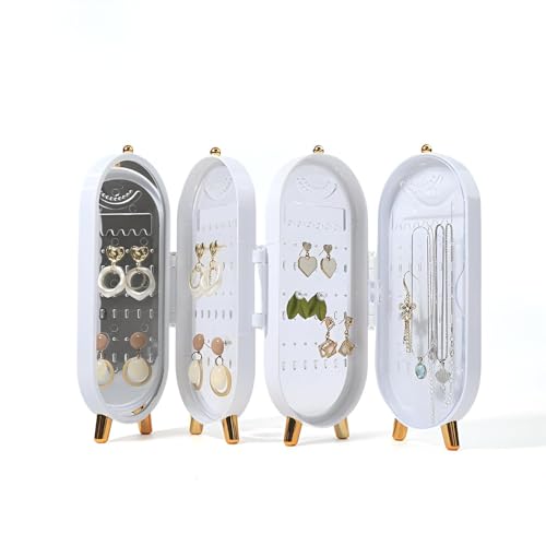 Generic - خزانة بمراية - صندوق مجوهرات بغطاء قابل للطي مع مراية مدمجة وفتحات مبطنة للخواتم والدلايات الفاخرة