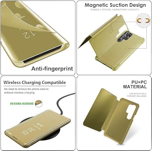 ELMO3EZZ - جراب حماية عاكس قابل للطي ورفيع للغاية مع مسند وشحن لاسلكي لموبايل سامسونج جالاكسي A05S QH من الموعز، A05S أرجواني (ذهبي)، TPU