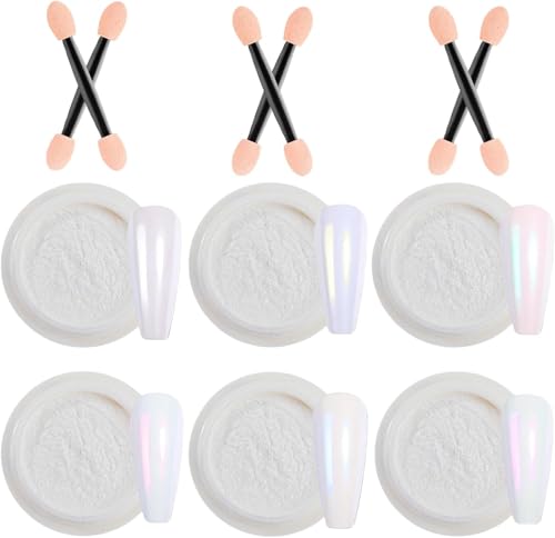 Generic - مسحوق طلاء الأظافر بتأثير حورية البحر، مسحوق لؤلؤي ثلاثي الأبعاد بلون لؤلؤي، 6 قطع