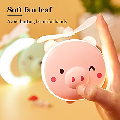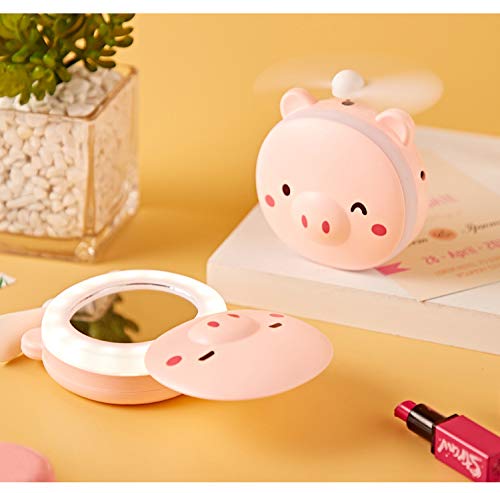 Generic - مراية بإضاءة ليد للمكياج ومروحة قابلة لإعادة الشحن بمنفذ USB بتصميم خنزير كرتوني، 3 في 1