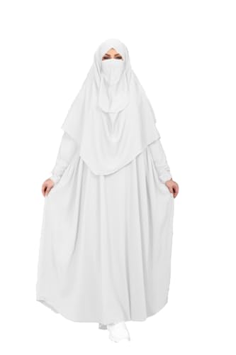MISK - MISK WOMEN'S ABAYA WITH KHAMAR ROYAL CREPE ONE SIZE WHITE