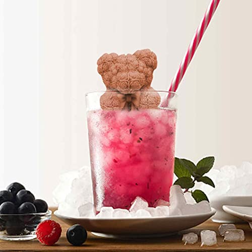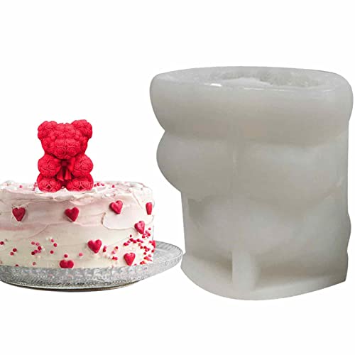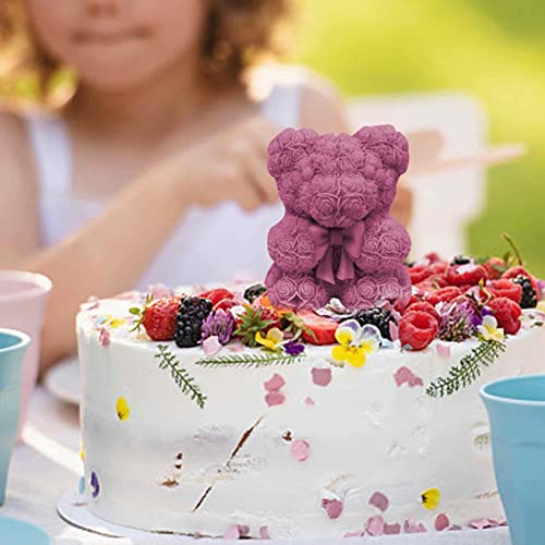 MISOYER - قالب سيليكون على شكل دب وردي من ميسوير - قالب مكعبات ثلج ثلاثي الأبعاد مع زهور وردية | قالب سيليكون على شكل زهرة عيد الحب لمكعبات الثلج وتزيين الكيك والشموع والصابون