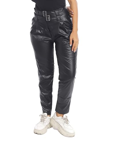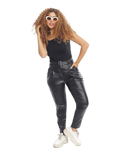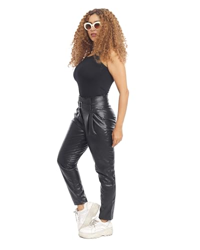 Generic - بنطلون ضيق عالي الخصر من الجلد الصناعي ميس بويم - اسود -