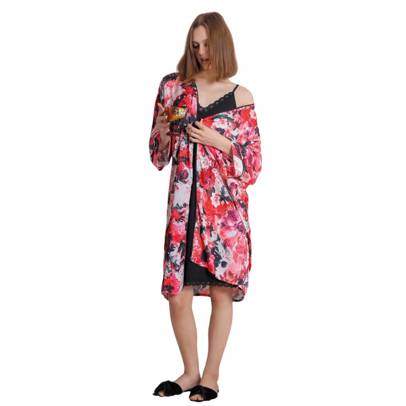 MissArabella - قميص نوم ستان كت مع روب للنساء AR-1094