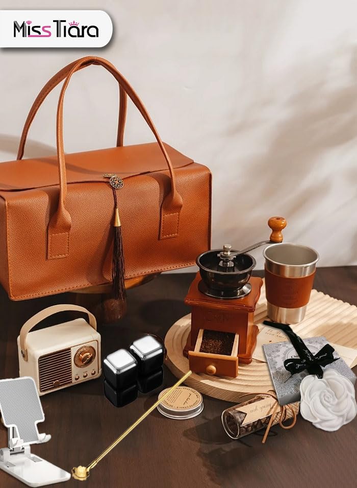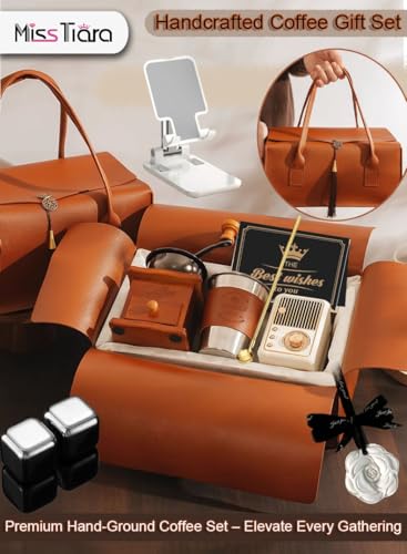 Miss Tiara - مجموعة سلة هدايا لماكينة تحضير القهوة من ميس تيارا، مطحنة قهوة يدوية عتيقة، كوب معزول لتحضير القهوة، مجموعة ملحقات محمولة لتحضير القهوة يدويا، هدية لمحبي القهوة وأعياد الميلاد وعيد الأم (مجموعة A)