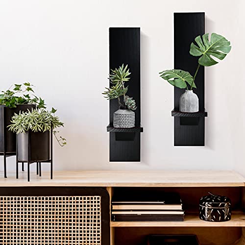 MISUMISO - حامل شموع يثبت على الحائط من 2 قطعة، حامل شموع خشبي، حامل شموع ريفي، حامل شموع عمودي مثبت على الحائط، رف تعليق، ديكور حائط بيت المزرعة من ميسو ميسو، أسود