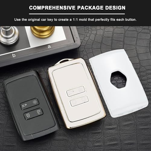- 🚗【ألوان متنوعة】تتوفر حافظة المفاتيح الناعمة المصنوعة من البولي يوريثين مقاوم للحرارة بثلاثة ألوان: أبيض وأسود وأزرق. لكن بسبب تأثيرات الإضاءة أو شاشات العرض المختلفة، قد يكون هناك اختلاف في لون المنتجات الحقيقية عن الصور المعروضة. محتويات العبوة: غطاء مفتاح سيارة رينو، لون أبيض.