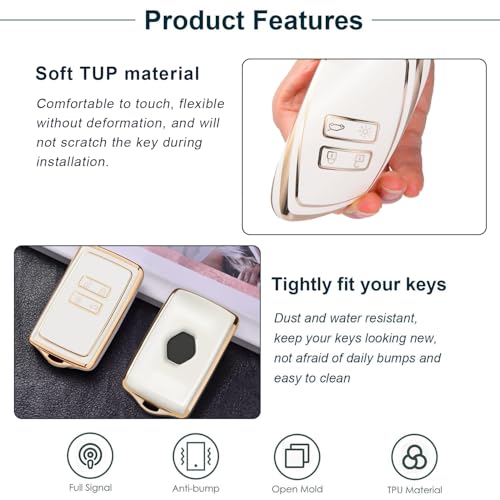 Misuyue - غطاء مفتاح سيارة من البولي يوريثين مقاوم للحرارة الناعم من ميسويو، حافظة حماية لمفتاح التحكم عن بعد بـ4 أزرار، لون أبيض