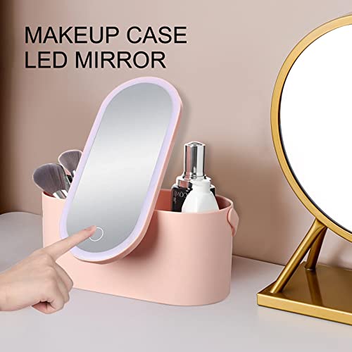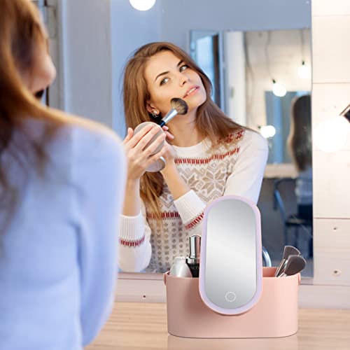Misvayli - صندوق مكياج مع اضاءة LED تعمل باللمس ومرآة هدية للنساء والفتيات 9.2 × 4.1 4.5 انش زهري من ميسفايلي بولي فينيل كلورايد يوريثين بوليسترين أكريلونيتريل بوتادين ستايرين