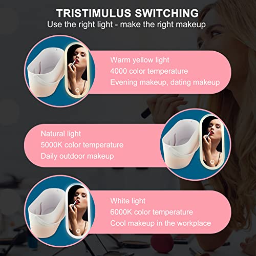 - مادة حافظة مستحضرات التجميل ومصباح LED قابل للمس: حقيبة مستحضرات التجميل مصنوعة من مادة ايه بي اس + بلاستيك بي في سي، حقيبة مستحضرات التجميل مقاومة للكسر وغير ضارة ومريحة وسهلة الحمل. المسي مرآة الزينة بإضاءة LED، المسي لتشغيل/إيقاف الإضاءة. لمسة طويلة لضبط سطوع الضوء. تحتوي حقيبة السفر للمكياج هذه على مرآة مضيئة ومصابيح LED عالية الدقة لجعل بشرتك تبدو أكثر طبيعية.