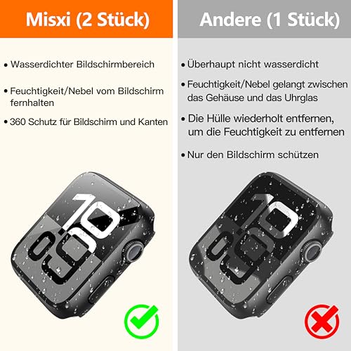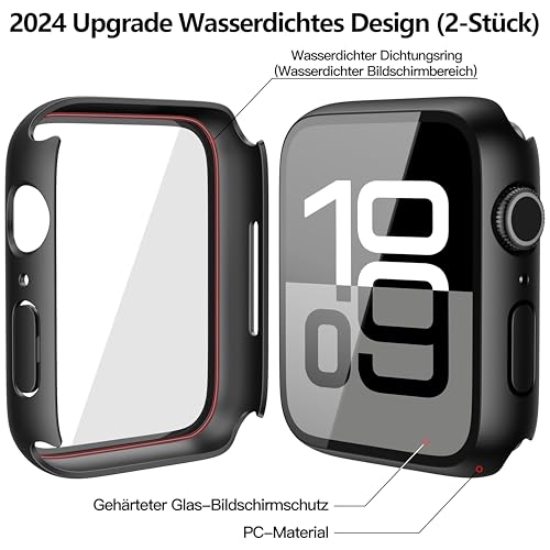 Misxi - حافظة حماية من البولي كربونات والزجاج المقوى متوافقة مع ساعة آبل سلسلة 10 مقاس 46 ملم، حافظة حماية رفيعة للغاية وقوية ومقاومة للسقوط لشاشة ساعة اي ووتش من ميكسي، لون أسود (عبوة من قطعتين)