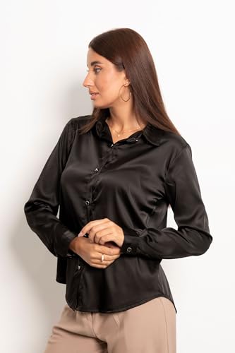 Mitcha - بلوزة ساتان بأزرار للنساء من ميتشا