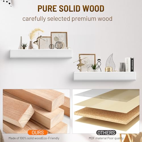- خشب الصنوبر الصلب - الأرفف الخشبية العائمة مصنوعة من خشب الصنوبر الطبيعي بنسبة 100%، وكل رف بحبوب طبيعية فريدة من نوعها، لمسة نهائية مصقولة ناعمة، خالية من الشظايا ومتينة وتدوم طويلاً.