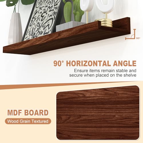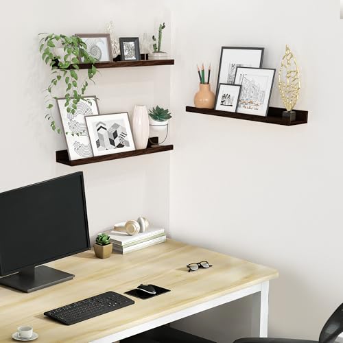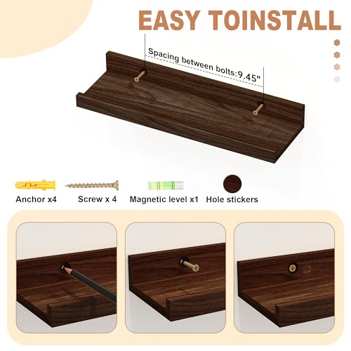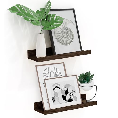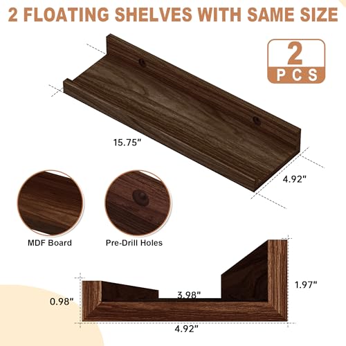 Miuhoemy - مجموعة ارفف عائمة تثبت على الحائط من ميوهومي مكونة من قطعتين، ارفف حائط لتخزين الديكور 15.7 انش، ارفف خشبية مثبتة على الحائط لغرفة النوم وغرفة المعيشة والحمام والمطبخ والمكتب من خشب الجوز