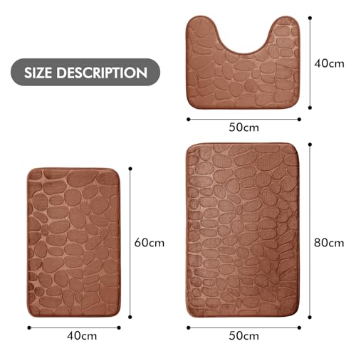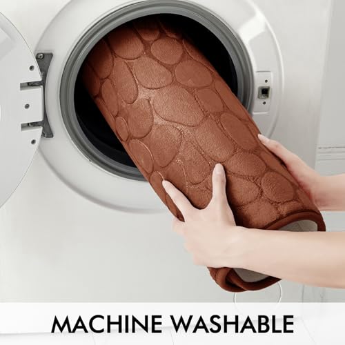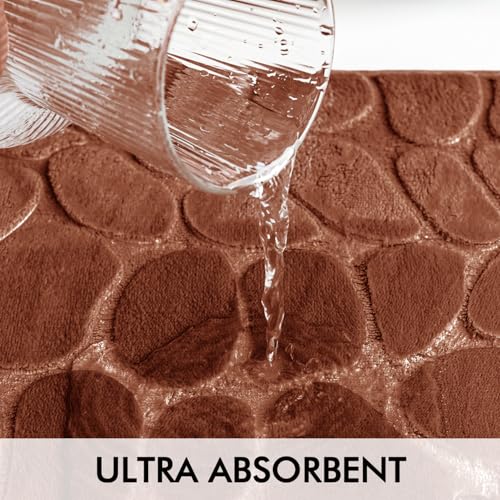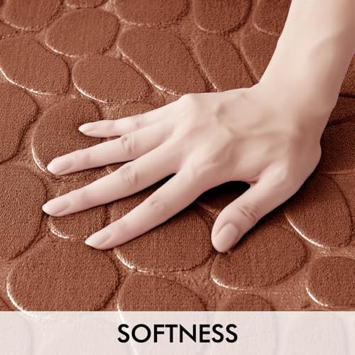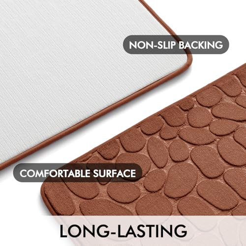 MIULEE - دواسة حمام مقاومة للماء من إسفنج الميموري فوم بتصميم زلط من الألياف فائقة النعومة غير قابلة للانزلاق للحمام والدش والمطبخ، مقاس 40 × 60 سم من ميولي، لون بني، قطعة واحدة