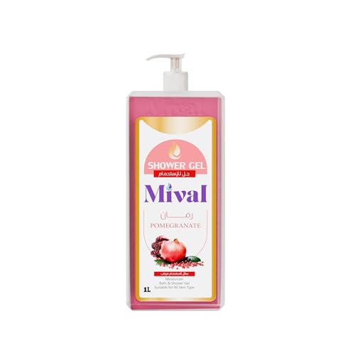 Mival - جل استحمام، غسول مرطب للجسم والاستحمام، سعة 1 لتر، مناسب لجميع أنواع البشرة من ميفال (رمان)