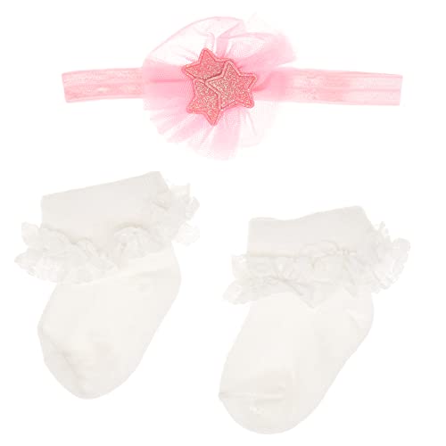 Mix and Max - طقم طوق للرأس وشراب للبنات من ميكس اند ماكس - 2 قطعة - اوف وايت وبينك, 2 Pieces