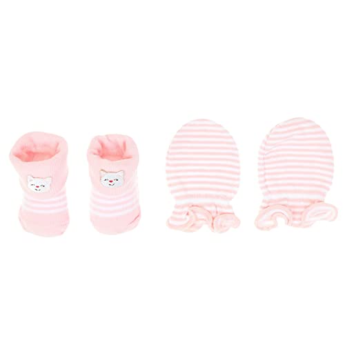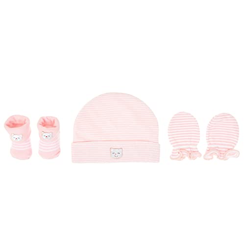 Mix and Max - مجموعة مكونة من قبعة وقفاز وشراب مطرزة بتصميم قطة، للبنات- بينك فاتح, زهري فاتح, 3 Pieces