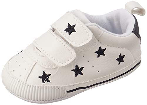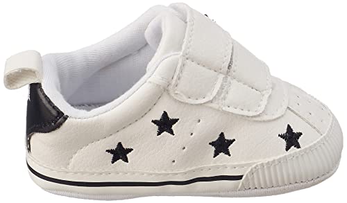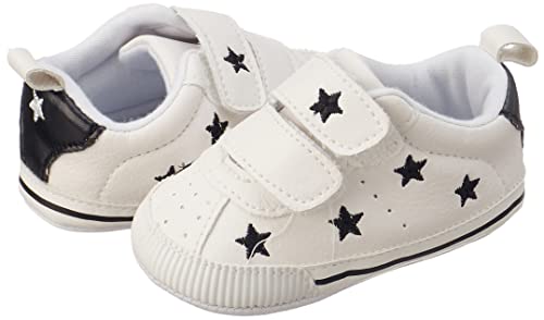 Mix and Max - حذاء بشريط فيلكرو ونجوم مطرزة للبنات من ميكس اند ماكس - اوف وايت واسود، 0 - 6 شهور