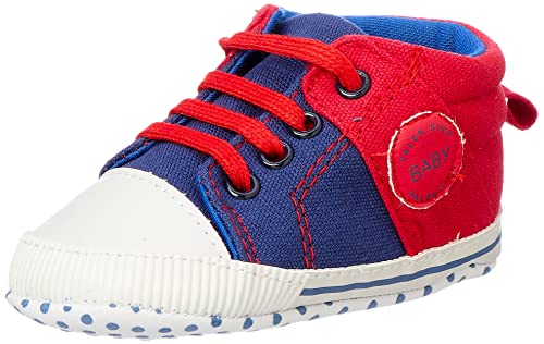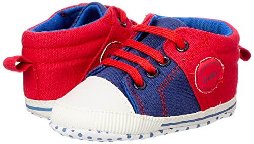 MIX & MAX - حذاء لونين برباط ورقبة مرتفعة بخياطة مختلفة اللون للاولاد من ميكس اند ماكس - احمر وكحلي، 12 - 18 شهر