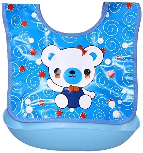 Mix&Max - مريلة اطفال برسمة دب من السيليكون للاولاد من ميكس اند ماكس - لون ازرق