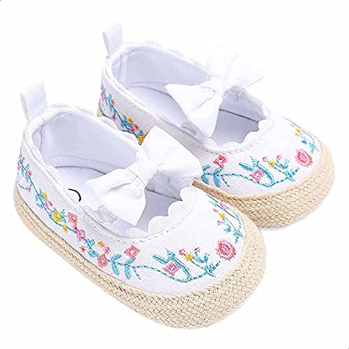 MIX & MAX - حذاء قماش مطرز ورود مزين بفيونكة للبنات من ميكس اند ماكس - ابيض، 0 - 6 اشهر