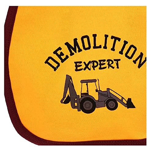 Mix&Max - ياقة مريلة قطن للاولاد بطباعة عبارة "Demolition Expert" من ميكس اند ماكس، مسطردة واحمر غامق