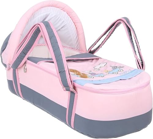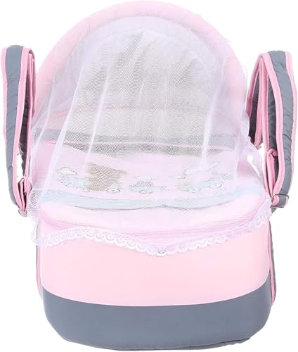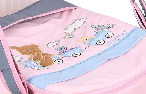 Mix&Max - سرير متنقل/ شيالة للأطفال مصنوعة من المايكروفايبر مزودة بشبكة ضد الناموس بتطريز دب، مخصصة للبنات من ميكس اند ماكس، بلون رمادي ووردي