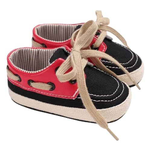 MIX & MAX - حذاء برباط وعراوي جانبية للاولاد من ميكس اند ماكس - اسود ومرجاني، 9 - 12 شهر