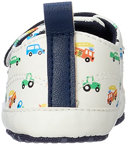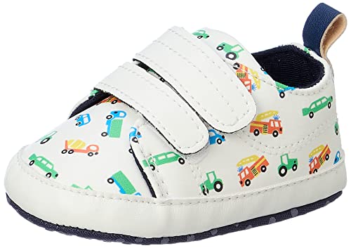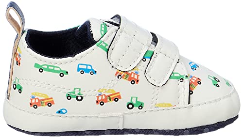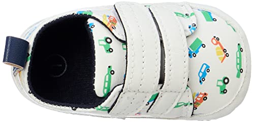 MIX & MAX - حذاء رياضي من الجلد الصناعي بتصميم مطبوع بالسيارات للاولاد من ميكس اند ماكس، لون ابيض، مناسب لعمر 0-6 شهور