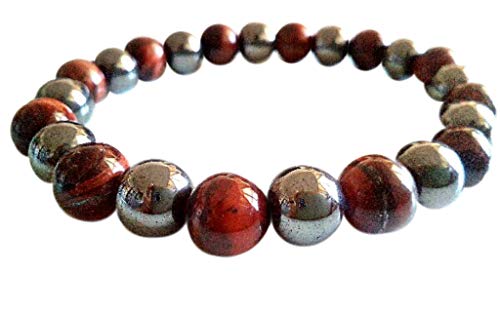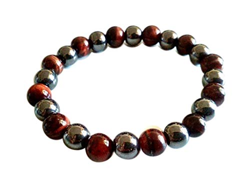 MixColours - سوار خرز مقياس 8 ملم من حجر عين النمر الاحمر وحجر الدم الاسود، للجنسين