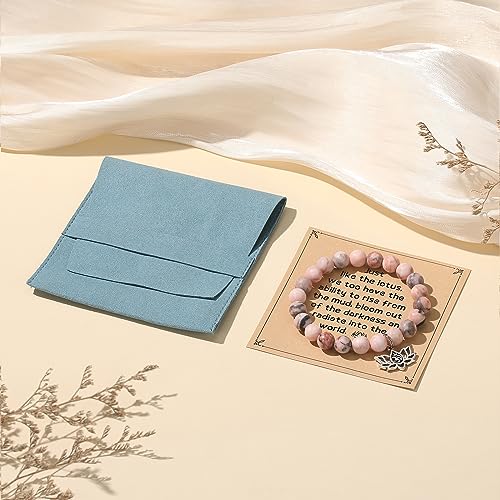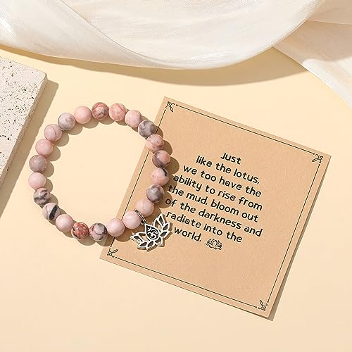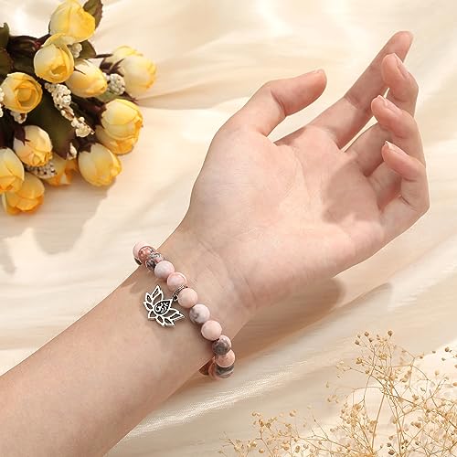 MIXJOY - ميكسجوي سوار يوجا روحي للنساء مرن من حجر زهرة اللوتس الطبيعي والخرز الزهري هدايا ريكي كارما لمحبي اليوغا استرخاء للبنات مقاس M بدون احجار كريمة