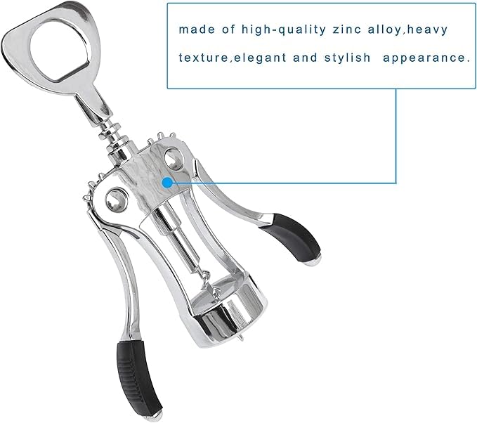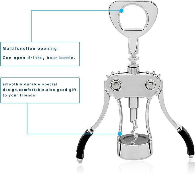 - لا مزيد من الفلين داخل شرابك: ألست تنزعج من تكسر الفلين لقطع صغيرة داخل مشروبك اللذيذ عندما تحاول إزالته؟ لن تضطر إلى التعامل مع هذه المشكلة مرة أخرى، لأن فتاحة الزجاجات ذات المفتاح اللولبي المجنح مصممة بعناية لإزالة الفلين من زجاجات المشروب دون تكسرها. عشاق المشروبات، هل يمكن أن تقولوا «نعم»؟