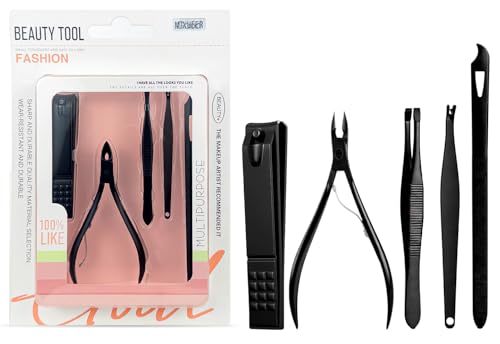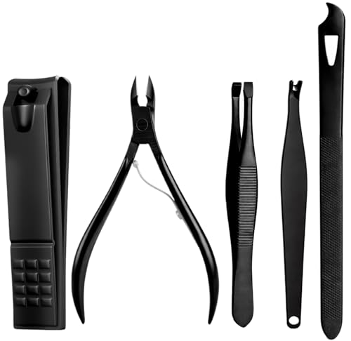 Generic - مجموعة أدوات تجميل للعناية بالأظافر من ميكسوير مكونة من 5 قطع، تتضمن قصافة أظافر وقصافة الزوائد اللحمية وملقط ومنظف وتشذيب الزوائد اللحمية على شكل حرف V ومبرد أظافر، مجموعة بلون أسود للرجال والنساء
