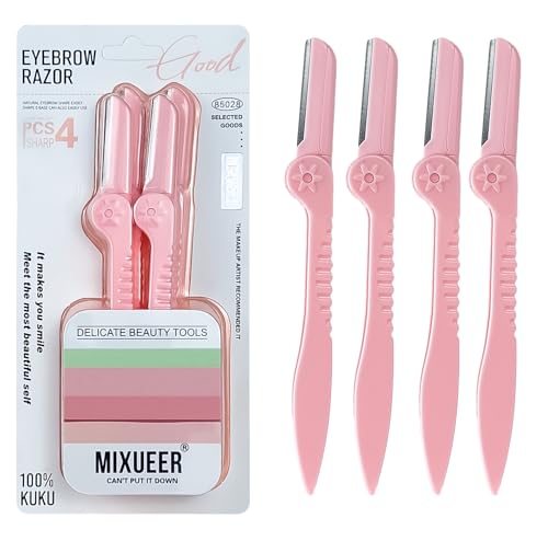 Generic - ماكينة حلاقة من ميكسوير - مجموعة من 4 قطع لتشذيب الحواجب، سكين حلاقة، للحواجب ومتعددة الوظائف، تقنية حلاقة ناعمة ودقيقة، حلاقة يومية للنساء، زهري
