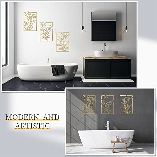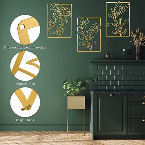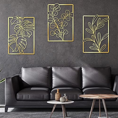 Mixweer - لوحات جدارية من ميكسوير، ديكور معلق على الحائط لغرفة النوم، تصميم عصري ذهبي أسود، نمط الورقة، مجموعة من 3 قطع