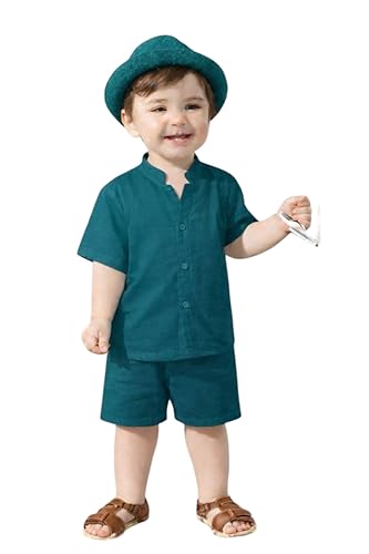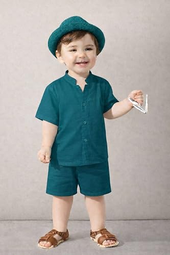 Meza - ميزا طقم شورت أولادي كتان إسباني، قميص نصف كم مع شورت
