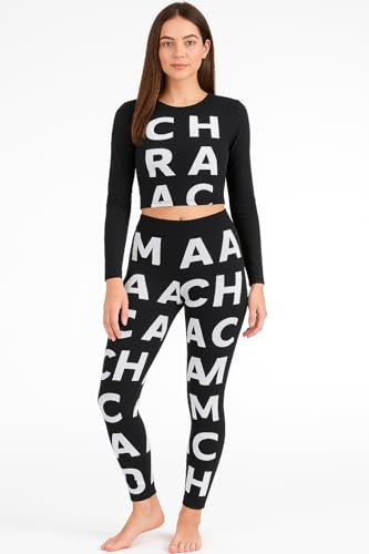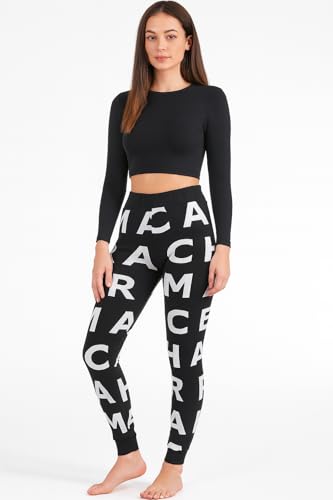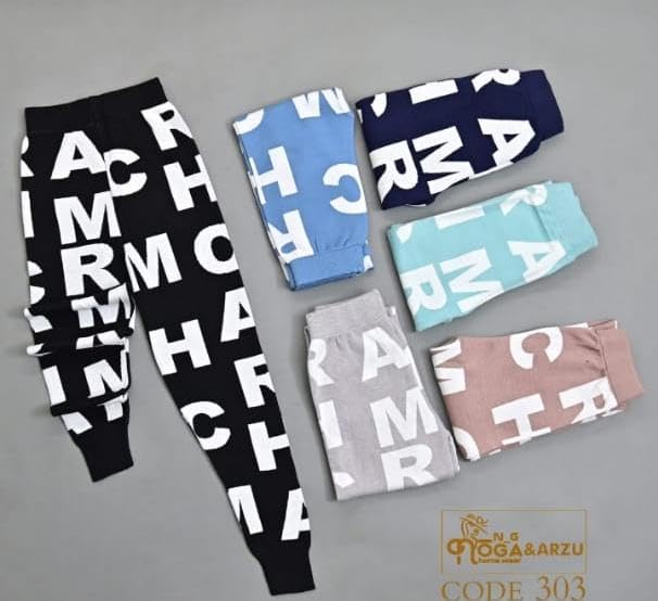 Meza - بنطلون رياضي ليجنز قطن مطبوع بحروف للبنات والنساء | خفيف ومريح للبس اليومي والرياضة من ميزا