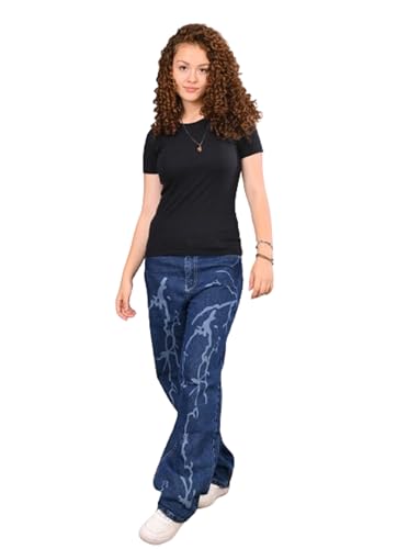 Meza - بنطلون جينز واسع للبنات والنساء بتصميم برق عصري - خصر عالى من ميزة